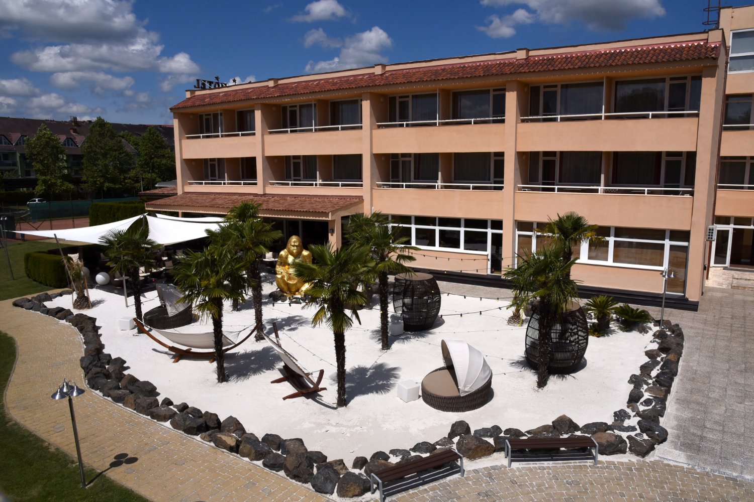 In einer der ruhigsten Gegenden Zalakaros befindet sich das Belenus Thermalhotel mit Indoor-Spa, beheiztem Außenpool & Sandstrand mit Palmen – ideal für erholsame Auszeit in ruhiger Lage.